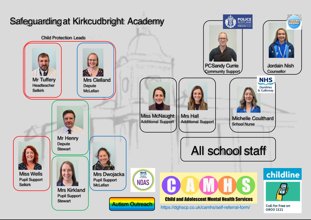 Within Kirkcudbright Academy we aim to create an environment in which all children are safe and feel safe.