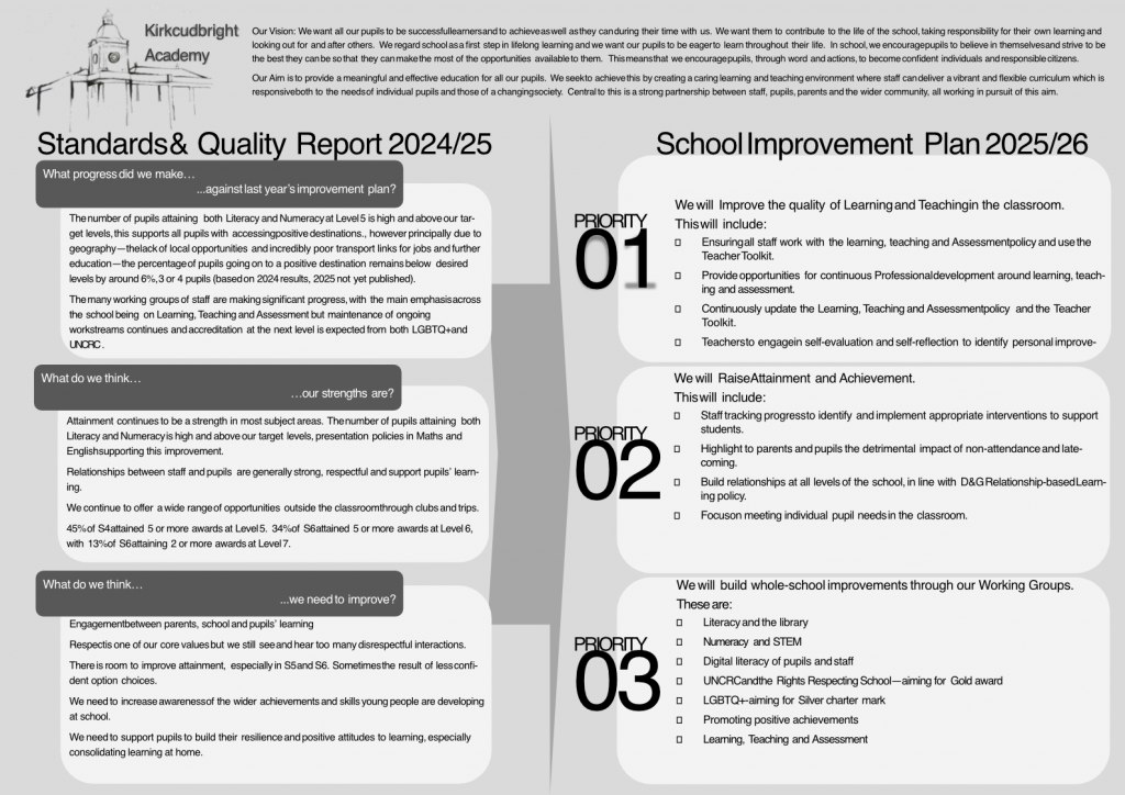 See below a ‘Parent Friendly’ version of our School Improvement Plan for Session 25/26.