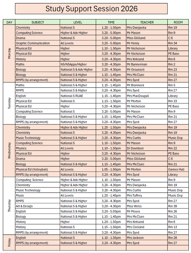 Now we have completed the main diets for our Prelim Exams we are now entering the final stretch leading up to Exams in April/May. Ensure your Son/Daughter is thoroughly prepared, encourage them to take advantage of our Sturdy Support Sessions.